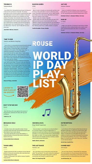 So, as we mark World IP Day, we invite you to take a moment to explore our Spotify playlist. Dive in to discover something new, and perhaps even find a new favourite. Let’s celebrate the creativity that music brings into our lives and recognize the importance of protecting the intellectual property that makes it all possible.