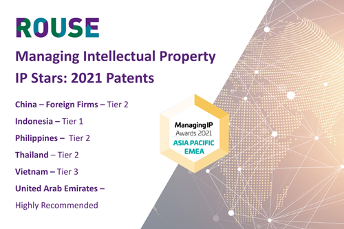 More news to share is that Rouse has received Patent rankings for this year’s Managing Intellectual Property IP Stars Awards. Rouse network firms, strategic partners and individuals across China, Indonesia, Philippines and UAE all receive awards for their great work this year. Congratulations to our team across the Rouse Network!