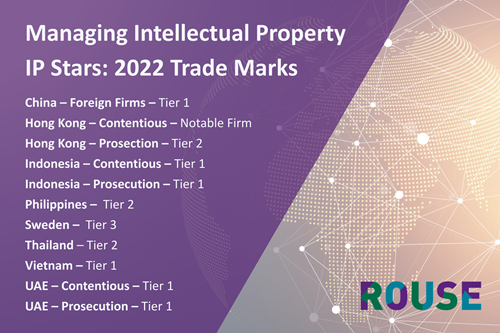 Rouse is awarded with excellent results for our Trade Mark rankings this year.