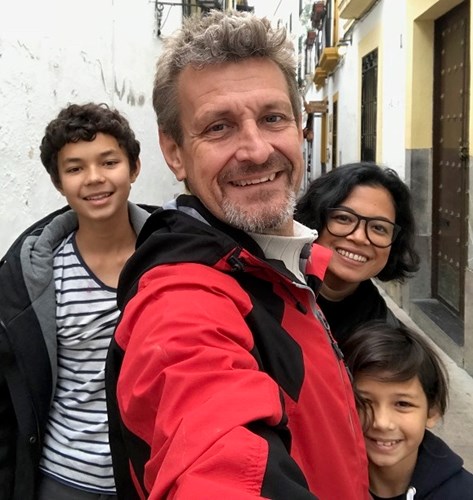 In 2000, Nick married Annette, an advertising professional from a diplomatic family that seemed to have lived in even more places than he had! They met in Jakarta and moved to Hong Kong in 2003, by which time their son Alex had been born.   In fact, because of the global outbreak of SARS (a viral respiratory illness) that year, they were the only people moving to, rather than away from, Hong Kong!  Happily, they survived and stayed there for seven years, during which time their daughter Zahra was born.