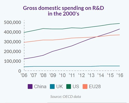 Even before these changes in national policy, the number of patent filings in China has been increasing significantly year-on-year. The facts show that this is a direct reaction to the amount of domestic investment in R&D and increased innovation in environmentally friendly technology. With a forecast that China will exceed US R&D expenditure by 2020, the number of patent filings are set to increase even further.