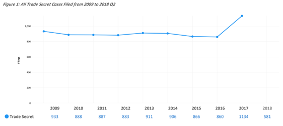 Source: https://www.ipwatchdog.com/2018/07/27/reports-increase-trade-secret-litigation-dtsa/id=99646