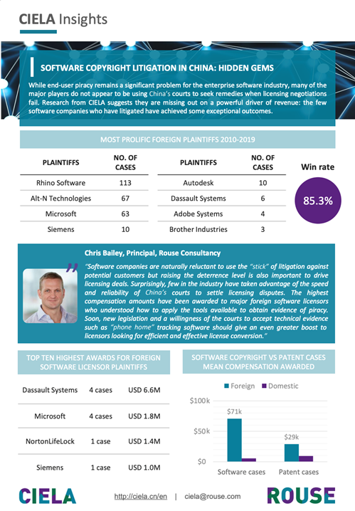 CIELA is Rouse’s online tool for analysing Chinese IP administrative appeals and civil infringement proceedings. You can register for a free account at the CIELA website.