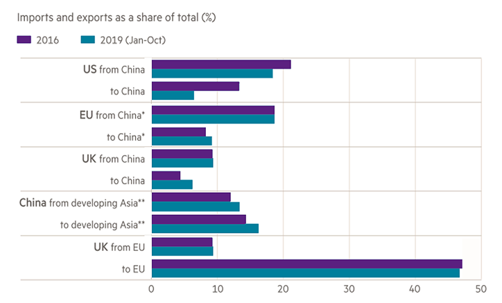 The disruption has also accelerated China’s refocusing towards countries that are part of the Belt & Road Initiative (BRI). Strong infrastructure development has created new trade routes for Chinese exports and increasingly BRI countries are also the ultimate destination for goods. We have already seen Chinese trade with BRI countries growing at a rate of 3% compared with trade with other countries which has decreased by 6%.
