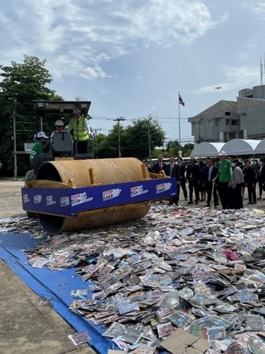 For instance, the 2024 Destruction Ceremony of Intellectual Property Rights Infringing Goods in Bangkok was hosted by INSEE ECOCYCLE, which used rollers, compactors, and cutting equipment for the destruction of confiscated items. Esteemed attendees included the Minister of Commerce, the Director-General of the DIP, the Police Commander, the Director-General of Customs, the Director-General of the Department of Special Investigation, and the Commander of the Royal Thai Army Air Defense Command. Rights owners, their representatives, and journalists were also invited to witness the event. Additional destruction ceremonies were held in Chonburi and Saraburi provinces, extending the efforts beyond Bangkok.