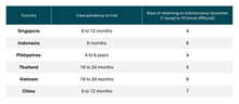 We compare below the difficulty level of obtaining an interlocutory injunction against a case pendency to trial. The importance of obtaining such an injunction is probably greater where it takes longer for the case to reach a first-instance decision— – as is the case with the Philippines.